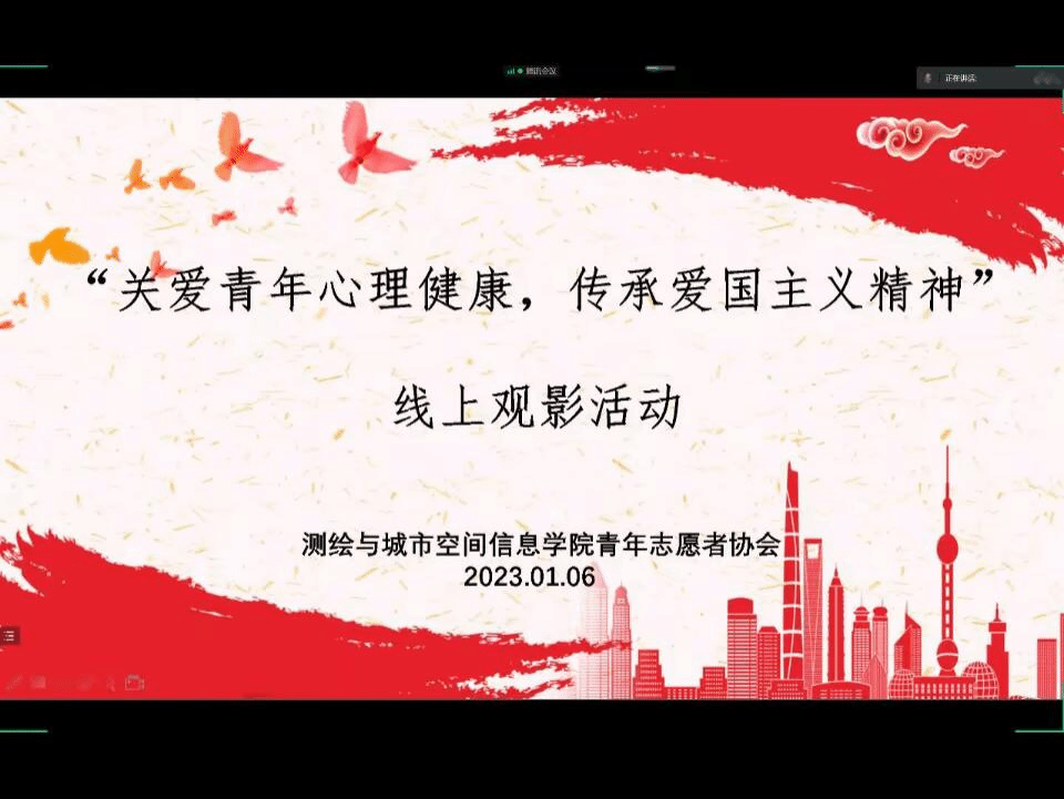 (通讯员:谢浩 尹淑娟)为进一步弘扬爱国主义精神,强化使命担当,激发奋进力量,同时也培养同学们良好的心理素质,缓解近期学习生活的紧张状态,英国上市公司365青年志愿者协会于2023年1月6日19:00-21:00举办线上观影活动。活动以“关爱青年心理健康,传承爱国主义精神”为主题,在腾讯会议召开。有216名同学参加了观影活动。