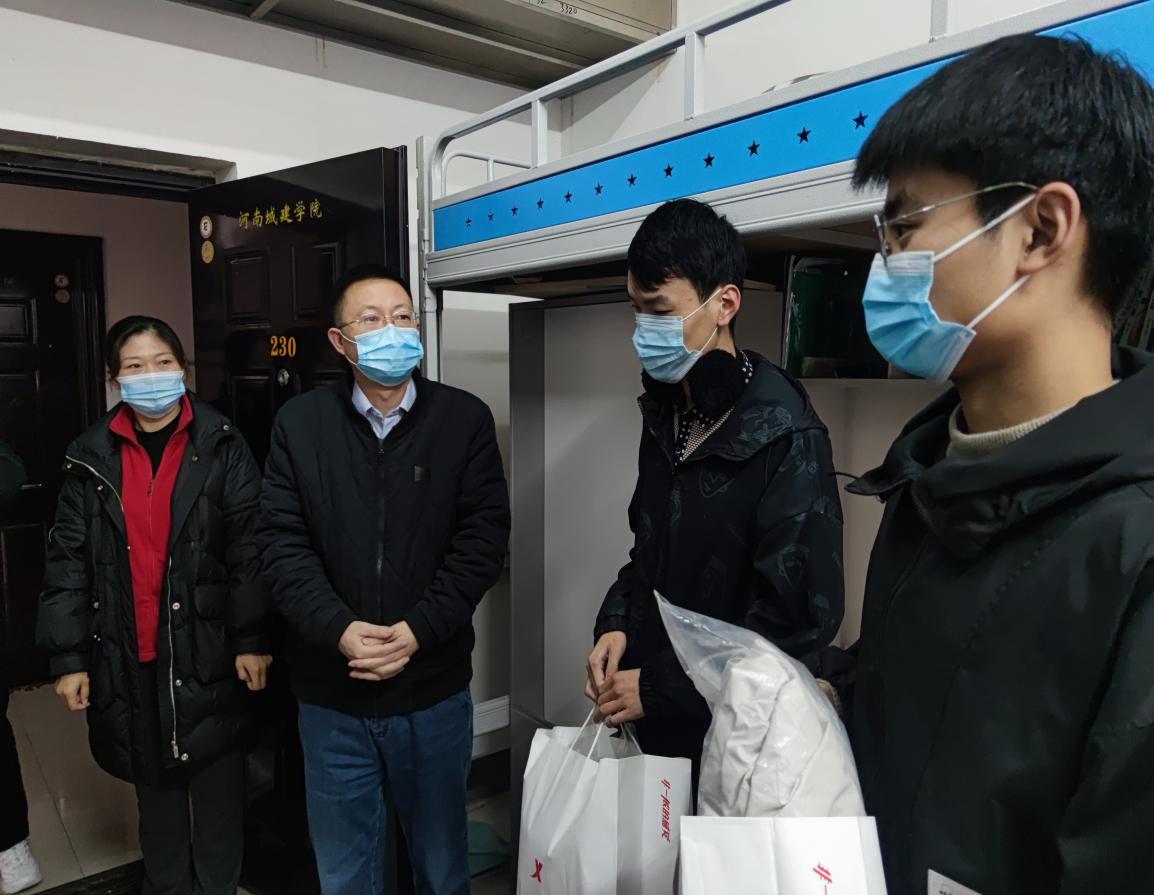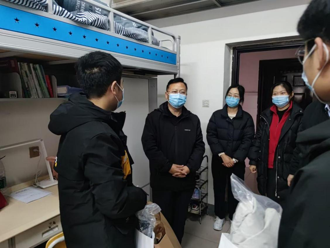 在员工宿舍,公司党委书记米启超、经理高松峰与员工进行了亲切交谈,详细了解了同学们的学习、生活情况,并叮嘱同学们养成良好的学习习惯,制定合理的学习计划,加强锻炼身体,注意防寒保暖,有问题及时与老师们联系,学校、学院和老师永远是大家坚强的后盾。随后,将羽绒服和防疫物资送到同学们的手中。同学们纷纷表达对学校和学院的感谢,并表示会充分利用学校提供的学习环境和学习机会,加倍努力去取得更好的成绩,不辜负学校和老师们的期望。