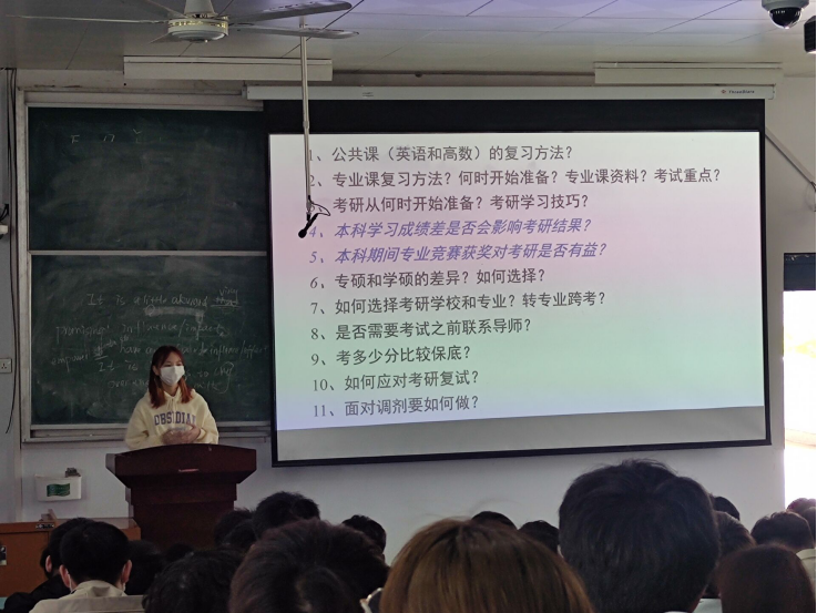 本次考研交流会的圆满召开,不仅使同学们对现在的考研形势和备考工作有了进一步的认识和理解,同时还激发了同学们考研的热情,坚定了大家的考研信心,为今后的专业学习奠定了坚实基础。