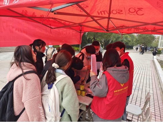 活动伊始,志愿者们早早搭好帐篷,准备好答题活动所需材料及精美奖品等待同学们的参与。活动过程中,志愿者们向同学们宣传有关“世界水日”的相关知识,引导参与者有序进行有奖问答,并为获奖者颁发奖品。知识问答活动吸引了很多同学的参与,扩大了此次活动的影响力。