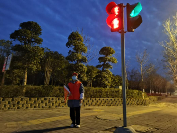 第一批志愿者在天未亮时提前到岗执勤