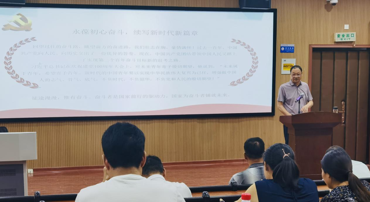 他强调,广大教师党员要在重温党史中,进一步强化大局意识,勇担时代重任;要在学习党史中,进一步发扬斗争精神,做到敢闯敢干;要在铭记党史中,进一步锤炼过硬本领,开创发展新局面。同时要深刻领会习近平总书记在庆祝建党100周年大会上的重要讲话精神,牢记和践行为中国人民谋幸福、为中华民族谋复兴的初心使命。坚定不移听党话、跟党走,拥抱新时代、践行新思想、实现新作为,在实现“两个一百年”奋斗目标中勇立潮头、敢于担当。
