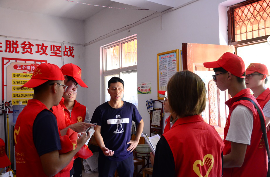 一抵达村中,公司服务队就进行了动员会议,尹和庄村村委会余主任和驻村扶贫队吴队长对服务队的到来表示欢迎。动员会上,队员代表介绍了此行的具体工作并向余主任和吴队长咨询了村域范围内的自然资源、地质灾害、人口经济发展和各类基础设施建设等基础情况。会议最后,带队老师许东辉对服务队的工作提出了更高要求并重点强调人身安全问题。