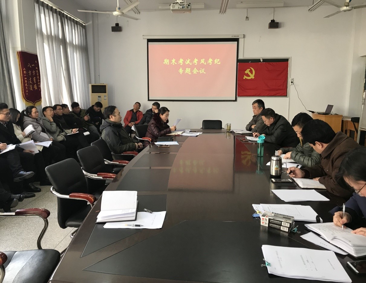 张宏敏带领全体教师学习《英国正版365官方网站考试管理规定》,使全体教师明确监考职责与义务,熟悉并规范监考流程,避免教学事故发生。