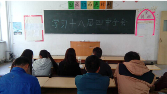 10月20日下午,测绘工程学院第二员工党支部5#110教室举行全体员工党员学习十八届四中全会精神活动。活动由支部负责人杨蕴主持,第二党支部全体员工党员参加会议。